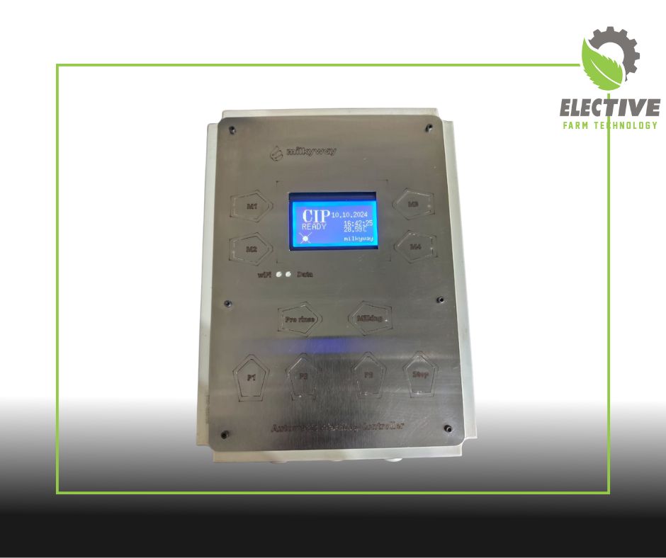 Maintaining hygiene is one of the major issue in the dairy farm. Milkyway CIP controller automatically maintains complete hygiene in the milking parlor. This system automatically takes warm water, cold water, alkali and acid as per designed program and drains the water when completed. This process is completed without intervention of any person.